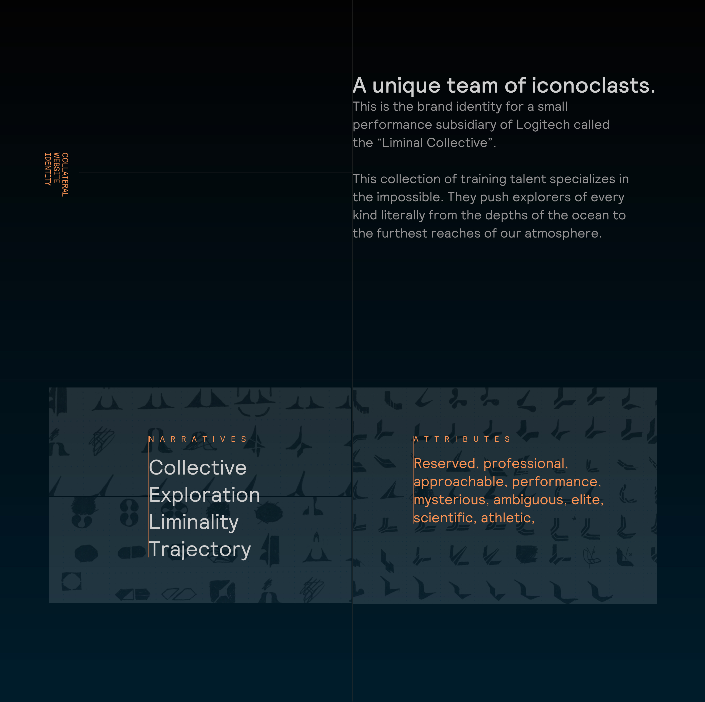 A branding system for the performance specialty group within Logitech called the Liminal Collective.
