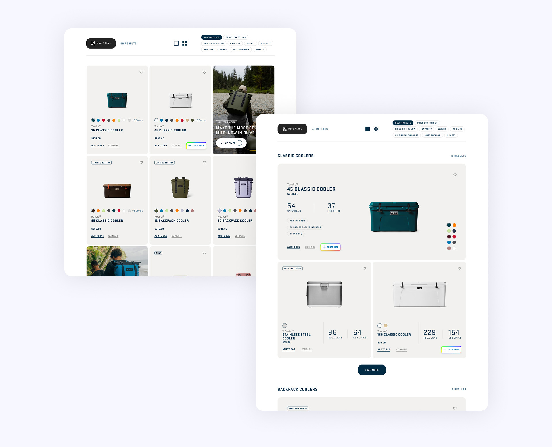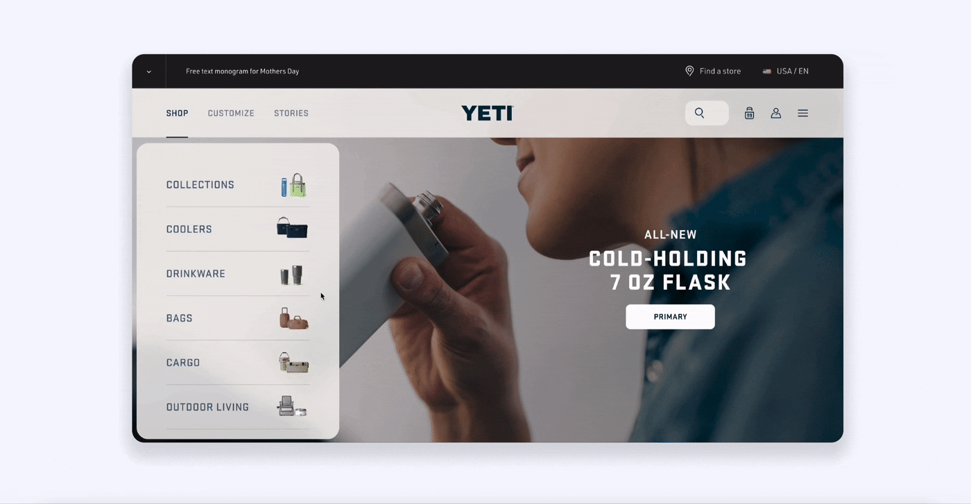 This project captures in large part the summation of my work while at Yeti. Here you'll see some of the re-platforming of the site through new UI/UX eyes. This mainly covers the shopping funnel itself from navigation all the way down to PDP.